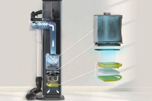 此外,LG A9T搭载了自动排尘、3步过滤、紫外线抑菌三合一创新科技,自动排尘功能,只要把吸尘器放在底座上,集尘筒内吸附的灰尘和毛发将自动被清理到尘袋内,大大降低了手动清理的次数,减少灰尘散落,简直是强迫症患者和懒人的福音!