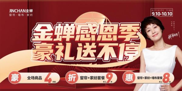 这次参加活动的产品对象包括金蝉窗帘、金蝉布艺、金蝉墙布,活动日期是9月10日—10月10日,线下有200家门店参与,优惠力度加大,具体活动详情请至当地门店咨询。