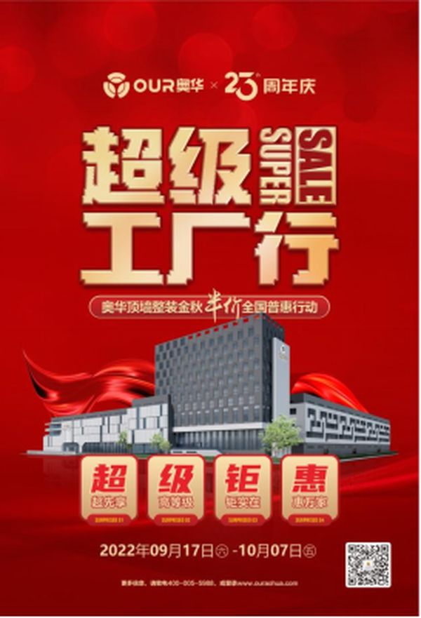 奥华坚守创新之路,匠心造匠品,促进集成装饰行业发展,为第三季“超级工厂行”保驾护航,奥华8大超级爆品优先抢,全国1000+专卖店超级钜惠,进店1折限量抢超级99卡,立抵4600元!现场抢定奥华超级整家订单,更有超多豪华大礼送送送。