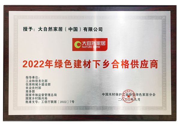大自然家居荣获2022年“绿色建材下乡推荐品牌”等多项殊荣