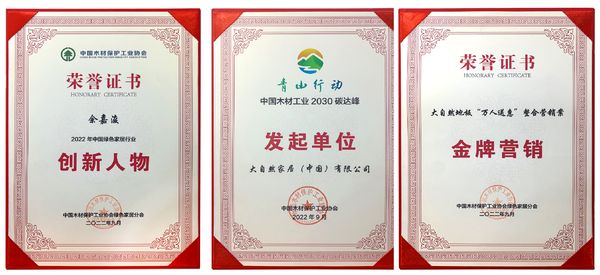 在新政策指引下,融合创新、数字化和绿色化转型、智能家居是关键词,绿色发展已然成为家居行业发展的新方向,不少家居企业在产品上提出绿色健康环保概念,寻找自己的绿色可持续发展之路。早在今年6月,大自然家居就得到中国建材流通协会认定,入选“2022年全国绿色建材下乡推荐品牌”,而在9月7日,大自然家居再获中国木材保护工业协会认定“2022年全国绿色建材下乡合格供应商”,在绿色发展领域走在了行业的前列。