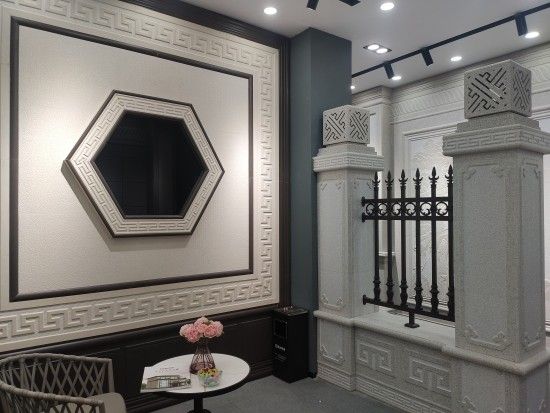 外墙区产品以极具优势的设计感,通过柔和的灯光系统,将罗马艺术线条、中式艺术线条等产品一一呈现,打造极具精致、高级的宏伟艺术空间。