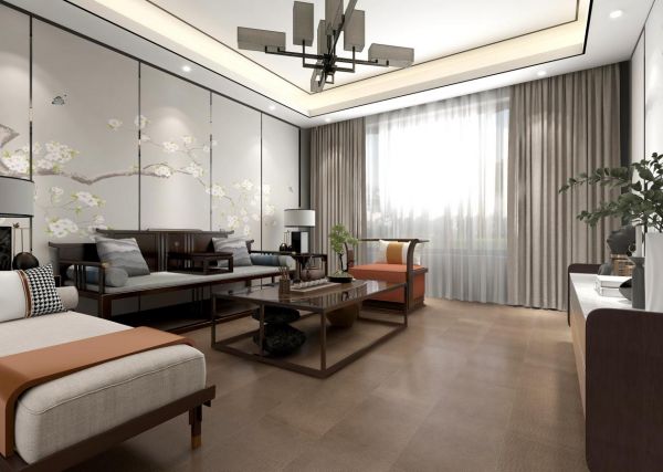 “梅须逊雪三分白,雪却输梅一段香”梅花凌寒傲雪的品质一直深受国人的喜爱,自古以来文人墨客从不吝于对梅的赞叹。以梅花来做为沙发背景墙,让人顷刻之间就能感受到中式古典的诗情画意,韵味悠长!而特点鲜明的中式家具,既延续了中式家具的经典元素,又局部进行了更符合现代家居理念的简化处理,保留了硬朗的线条感,颜色与材质更具现代感,显得比较清秀雅致,是一种刚柔并济之美。