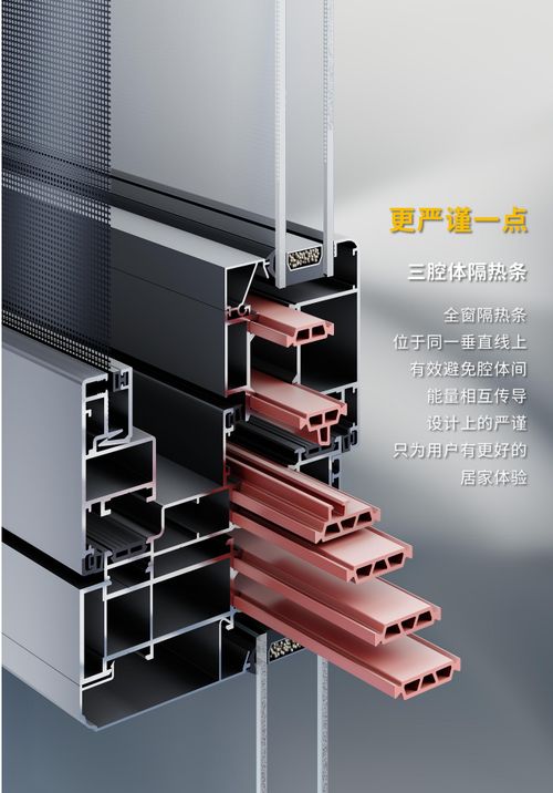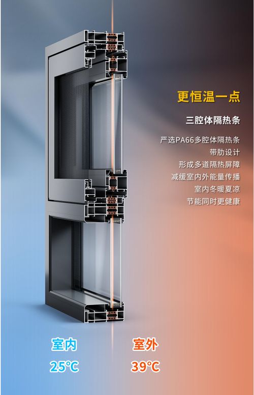 精选PA66多腔体隔热条,高铁级三腔体隔热条,每一根隔热条都有三个空腔体,确保有效切断温度在隔热条内的传递。五条隔热条处于同一水平面上,有效避免腔体间能量相互传导,最大限度阻隔热传导,再也不用担心极端气温困扰。