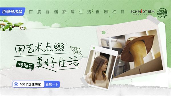 2022年9月,SCHMIDT司米家居携手百度首档家居生活自制栏目《100个想住的家》,联袂打造“100个想住的家”特别篇,通过KOL博主的美学新家居视觉,分享SCHMIDT司米家居的设计故事,让大众隔屏真切体验SCHMIDT司米家居每一款将艺术与生活灵魂契合后再创造的家居空间美学产品,呈上一份独特而美的种草攻略及家装指南。