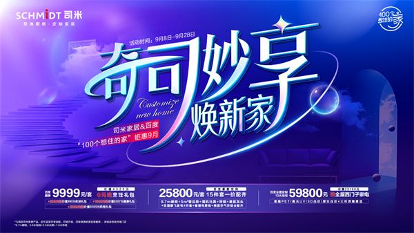 每一个司米家居空间及每款产品,都是司米对于生活真实之上的艺术化和审美化创造。2022年9月,SCHMIDT司米家居更携手百度共同开启金秋九月理想家居新风尚,“奇司妙享”定制你的理想家,以指定款产品9999元/套司米百变厨房满足不止100个家庭的定制需求!