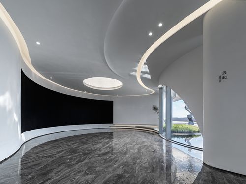 在地文化的突出体现以及设计集艺术与功能一体的和谐搭配,是我们做空间设计的要求和目标。置身宋都·海语东方售楼处,超大的落地窗设计让窗外的海景与室内的曲线融为一体,在满足空间功能的前提下,构建了一个人与自然、人与空间和谐共处的艺术场域。