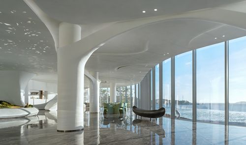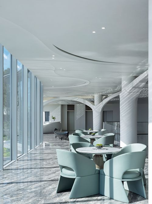 本案体现了当代山海图景与海岸生活方式的高度适配、完美共融,这也是我们在宋都·海语东方一案中着重凸显的价值。东方的朦胧语汇与自然的活力、艺术的格调,关联为抽象、具象与想象的独特美学,延展为虚实相映的丰富意涵 —— 自由的张力在曲线间游走,审美的意趣在留白中滋长,一个不循常规而又极富意境的体验空间,在半隐的东方境界、无序的艺术状态下成形。