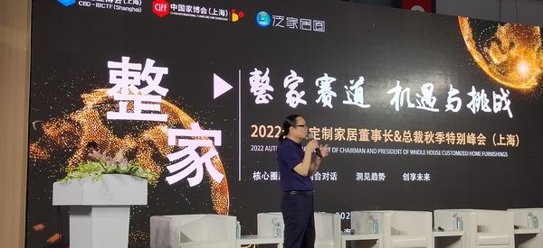 2022年9月6日,由泛家居圈、中国建博会(上海)、中国家博会(上海)联合举办的“整家赛道,机遇与挑战——2022全屋定制家居董事长&总裁秋季特别峰会”,在上海虹桥国家会展中心5.2A388论坛区隆重举行,一众行业大咖同台探讨整家的发展与挑战,上演了一场精彩的思维碰撞!