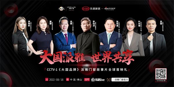 9月16日,派雅门窗携手新浪家居启动“大国派雅 世界共享”CCTV-1《大国品牌》派雅门窗故事片全球首映礼,以大国品牌担当讲述派雅「深舒适」价值体系,展示更理想的舒适人居生活方式。