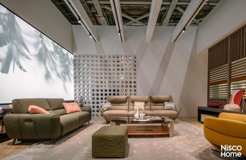 展馆内以产品为C位展开,据介绍,Nisco Home系列的产品以功能沙发为主,沙发腿部和背部自动调节,坐躺自如,怎么舒服怎么来,配合灵魂0压绵,功能和舒适完美结合,吸引众多观展者的关注和体验。