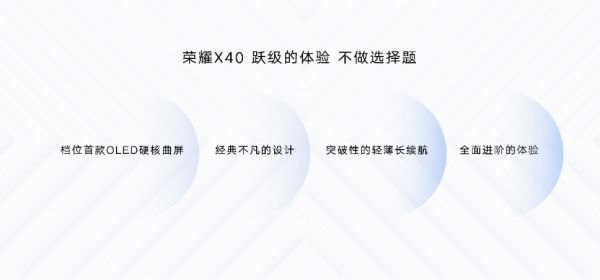 用户在选择手机时,经常面临各种选择题。荣耀提出“真正的跃级不应只在某个地方‘登峰造极’,而应带给消费者更全面的体验,让你不做选择题”的理念,在用户真正需要的方面带来超乎预期的体验,是荣耀一直所坚持的。作为X系列九年里程碑之作,荣耀X40手机又一次刷新大众对荣耀“普惠科技”的认知,并在屏幕、续航、设计等诸多方面跃级升维,致力让用户在功能和设计之间、科技与价位之间都不做选择题。
