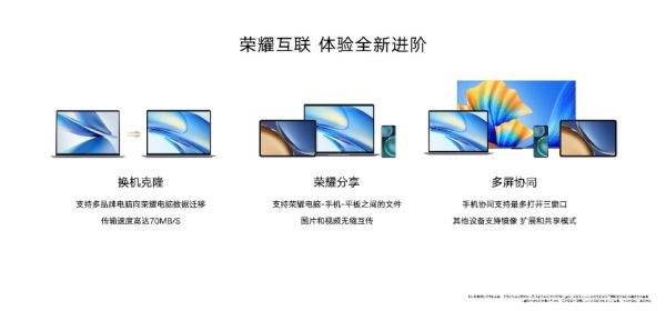 此次同场发布的全新荣耀MagicBook X系列笔记本共有X14和X16两款产品,它们具有简约轻盈、颜值爆表、品质出众等特点,还全系支持荣耀互联,可轻松完成笔记本与其他设备间的文件分享和传输,传输速率高达70MB/s;多屏协同功能支持与手机、智慧屏等设备的协同,可实现手机在笔记本上的三窗口多开;不仅如此,换机克隆功能还能够有效解决用户更换新笔记本后数据传输慢而难的痛点。值得一提的是,荣耀X40手机在X系列中也首次支持多屏协同,可以轻松连接到笔记本,以更加无缝高效的方式在手机和笔记本之间便捷操作,实现跃级体验。