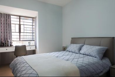静谧舒适的浅蓝色卧室,营造天然而安宁的睡眠环境,充分利用窗边空间,借助窗边的一抹阳光,开辟出独立的阅读办公区,喝茶小憩也是不错的选择,感到劳累时,眺望窗外放松思绪,会发现身后就是温暖的家。