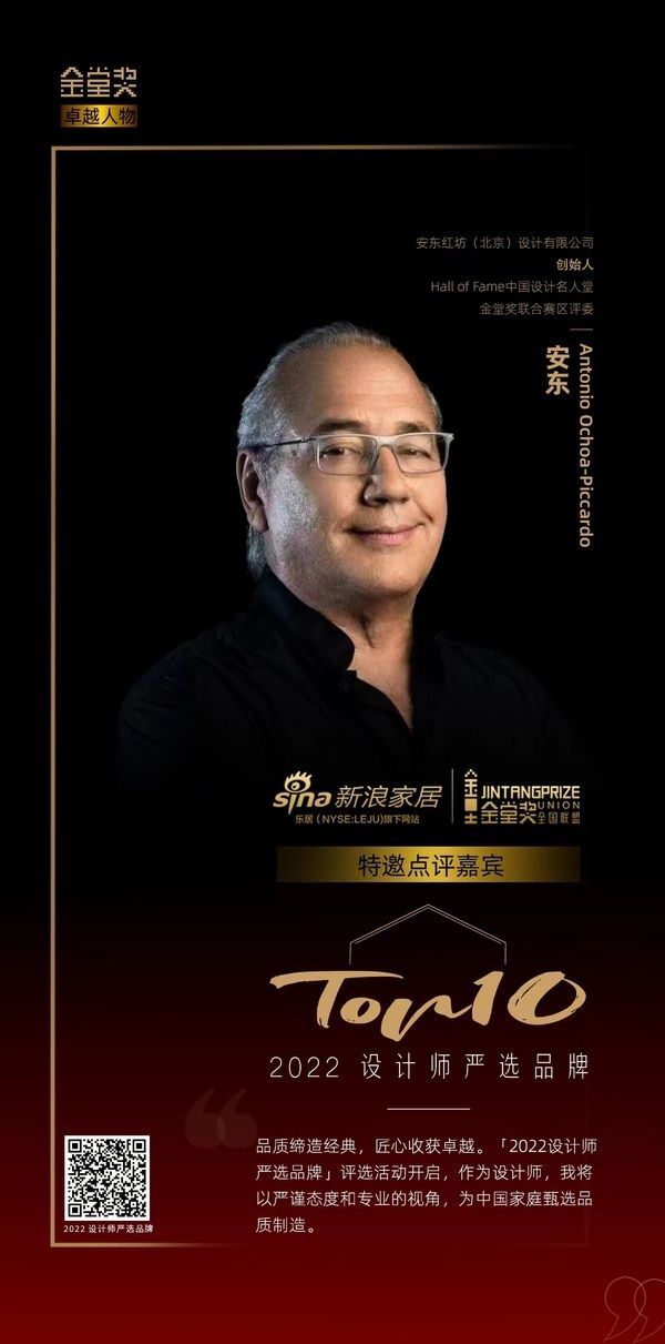 其中,安东红坊(北京)设计有限公司创始人、Hall of Fame中国设计名人堂 金堂奖联合赛区评委 安东作为本次活动的特邀点评嘉宾,他表示:品质缔造经典,匠心收获卓越,「2022设计师严选品牌」评选活动开启,作为设计师,我将以严谨态度和专业视角,为中国家庭甄选品质制造。