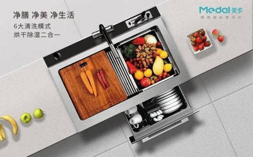 美多集成水槽洗碗机同样高效集成,搭载洗涤、切配、洗碗、除菌、消毒、烘干,一机多用!让原本纷繁复杂的厨房工作台变得高效便捷,水槽高效动线设计让洗菜、沥干、切菜一气呵成;超大容量洗碗机,洗消烘一体强效喷洗冲刷餐具,消毒灭菌,一键烘干,解放双手轻松自在,真正符合现代家庭的厨房需求。