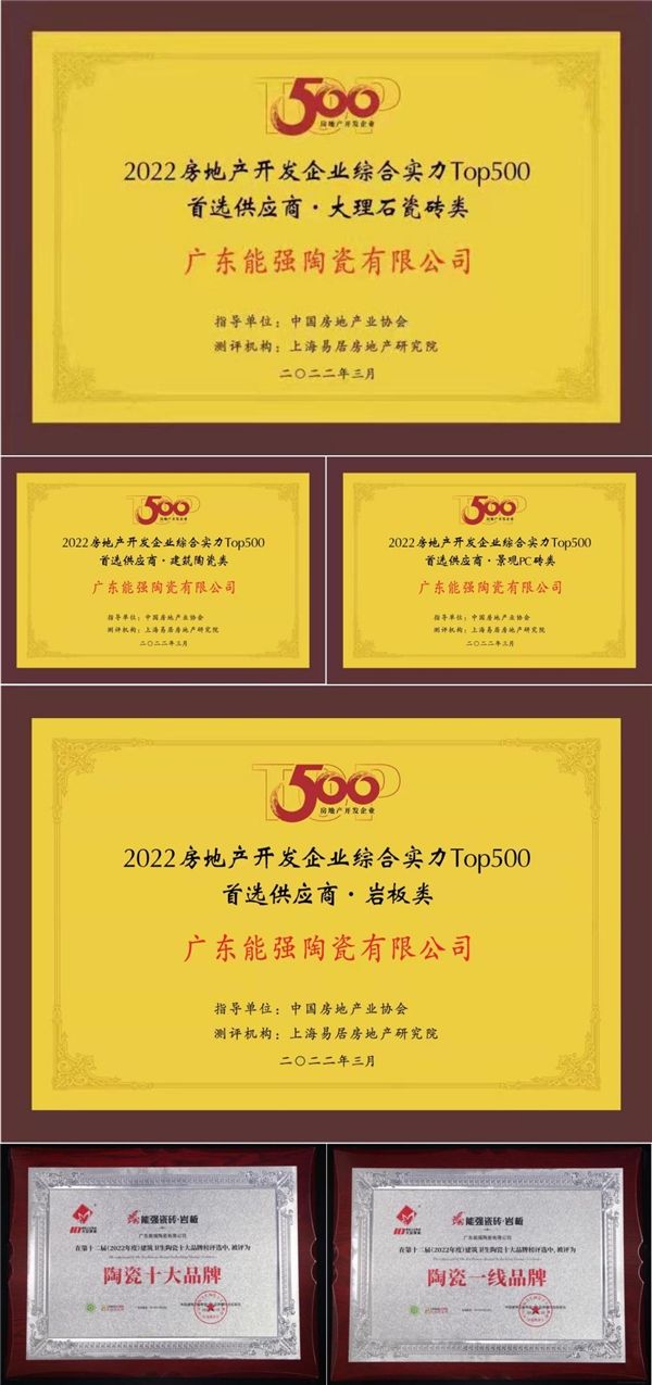 自创立以来,能强始终以匠心谋发展,在生产中过程中,充分发扬匠人精神,狠抓产品质量和绿色生产,高举先进硬件设备、精细化生产管理和严苛品质监控,过硬的产品品质深受社会各界认可,是行业有名的“质量代表”,多次荣获“陶瓷一线品牌”、“陶瓷十大品牌”、“房地产开发企业综合实力TOP 500 首选供应商”等荣誉称号。