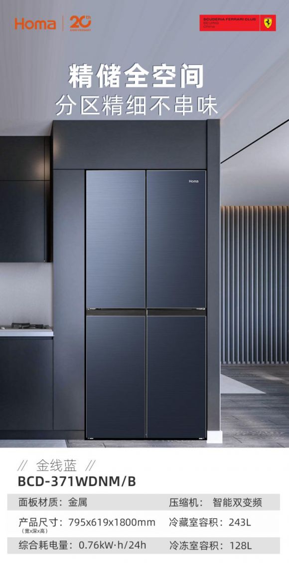奥马冰箱371金线蓝:全空间精储,高品质存鲜