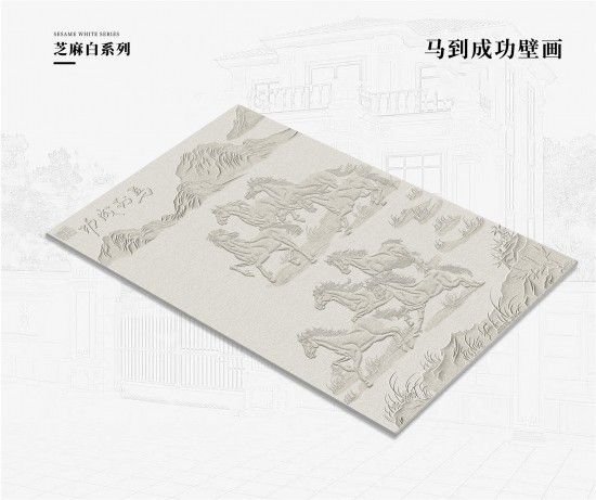 国达陶瓷一直坚持以“智造创新”作为产品研发理念,打造出罗马艺术线条、中式艺术线条、松鹤延年壁画、天下第一福、壁柱饰花、太阳能瓷雕景观灯等众多原创产品,引领潮流,赢得行业和业主的认可和好评。国达陶瓷马到成功陶瓷壁画,也是国达陶瓷秉承智造创新产品理念,经过刻苦钻研而成的又一亮眼新品。