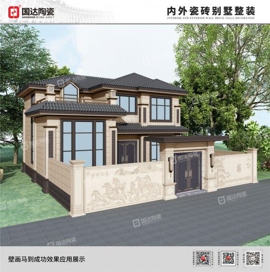 马到成功陶瓷壁画,铺贴在别墅外墙、围墙、背景墙等空间,寓意能招财转运,马上发财,同时象征主人家像龙马一样精力振奋,代表着健康、生生不息,更有着马到成功、财源广进、前程似锦、飞黄腾达的祝愿,对促进业主的事业运势有很大的帮助,创造事业上一个又一个的辉煌,是别墅外墙装饰的品质之选。