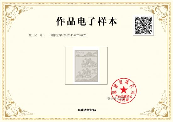 值得一提的是,国达陶瓷马到成功陶瓷壁画,凭借独创性、原创性,经福建省版权局审阅,获得作品登记号:闽作-2022-F-00796720。