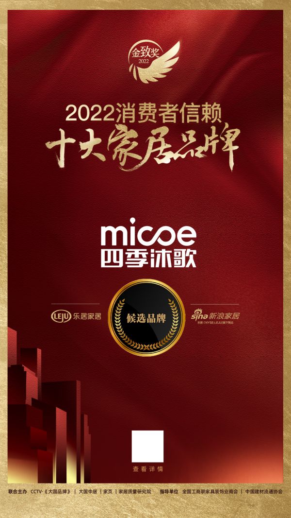 网址:四季沐歌入围「2022 消费者信赖十大家居品牌」·金致奖候选品牌 https://www.jiaju82.com/news-view-id-824969.html