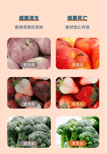 可能有朋友纠结要不要选带荤素双仓分类的果蔬净化器,这个主要看个人需求。如果担心交叉感染和串味,可以选择荤素分类的果蔬清洗机,清洗时更加卫生,荤素食材还能同时净化,效率更高一些。当然如果对这方面不在意的话,不分类的果蔬清洗机也完全够用了。