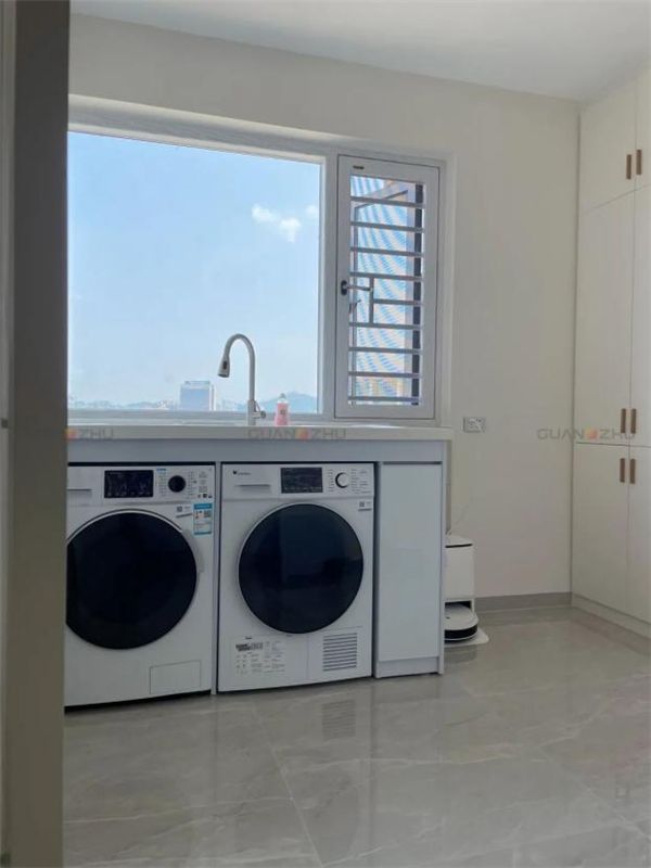 厨房和洗衣房是使用频率高、杂物多的家居功能间,具备耐磨耐脏、防水易洁等硬核功能的冠珠劳伦白金浅灰瓷砖,更能适应这样重油多水潮湿的空间,而且日常清洁方便,一抹即净,持久如新。