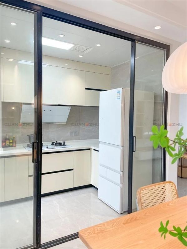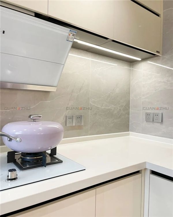 在优异性能的保障下,纹理自然大气的冠珠劳伦白金浅灰瓷砖和米黄色橱柜搭配出敞亮大气的感觉,为一日三餐的烹饪成为一种幸福的享受。
