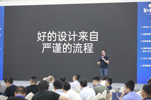 盈趣智能总经理张佑向与会嘉宾分享了《盈趣的创新设计与智能制造服务》,他表示:“好的产品来自严谨的流程”,盈趣智能从需求调研和分析、成本与价值的平衡到产品的设计研发及落地,都经过了层层严格把控。