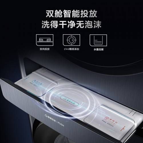 洗衣液投放区采用的是AI双舱智能投放技术,能够根据衣物重量精准投放洗衣液,1次加满,可洗30次,这样再也不用纠结洗衣液放得多了还是少了,如此智能便利的投放区,我这样的懒人,真的很难不心动啊!