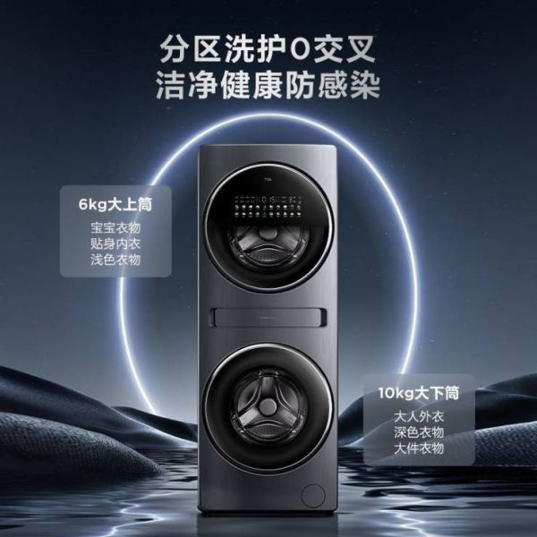 双子舱复式分区洗衣机Q10采用上下双滚筒分区设计,解决多孩家庭、多人大家庭洗衣难题,避免衣物分批次洗耗时耗电问题,而且搭载独立平衡减震功能,上下同时洗也能做到稳重如一。这款洗衣机的离子柔烘功能非常值得称道:免除熨烫,烘完后衣物蓬松有型,且衣干即停,干衣不过烘,感温雷达也能保持恒温不伤害衣物,下筒洗完衣服后可以直接将衣服烘干,一台洗衣机就把洗衣机跟烘干机的活都干了。有时天气阴冷潮湿,洗完的衣服无法及时晾干,给生活带来了很大的不便,这时就十分需要TCL Q10的离子柔烘黑科技,衣物洗涤后直接开始烘干,一次性就把衣物的洗护工作都做了,并且寸步不需离家,再也不用将贵重衣物送去洗衣店,对用户来说可以算是无上的便利了。