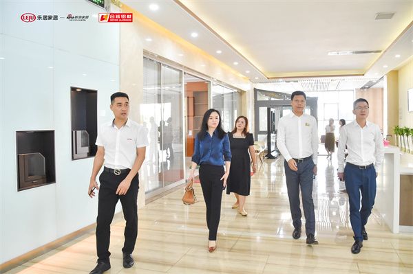 在英辉铝业展厅,走访团从设计创新、技术研发、性能等对企业产品进行了详细了解,据介绍,英辉铝业在2014年在行业率先推出瓷泳技术,2018年推出珐琅丝工艺,并在2022年推出瓷泳新色钛空灰,珐琅丝新色珍珠灰和摩登灰,深受市场青睐。随后,走访团在英辉铝业型材仓库和生产车间对该工艺进行细致观摩,并从原材料、生产设备、工艺及成品对企业有了更深一步的了解,井然有序的运作流程和苛刻的质量检测更是让走访团为之赞叹。