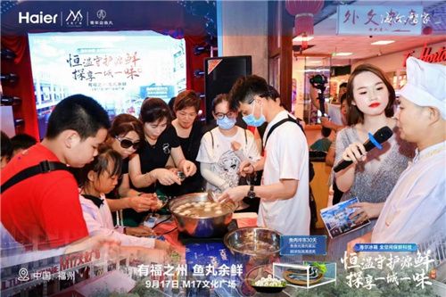 为守护好城市风味,9月,海尔冰箱在16000㎡的福州M17文化广场落地“恒温守护源鲜,探享一城一味”活动。通过与闽味大师携手展现传统技艺,让现场用户参与到DIY制作中,将闽派美食起源故事传递给更多用户。与此同时,其还带来了重磅新品——博观666,展现储鲜实力。