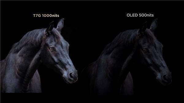 以上两点,海信U7H和TCL T7G两者的表现力都非常优秀,不相上下。 值得一提的是,两者在对比度以及色彩上有着不小的差距,海信U7H静态对比度为2500:1,动态对比度为5万:1,色域值为92%DCI-P3。TCL T7G静态对比度为7000:1,动态对比度为1000万:1,色域值为96%DCI-P3。色域值越高,色彩表现丰富度越高,图像显现也越好看,这一块TCL T7G表现的显然更好一些。