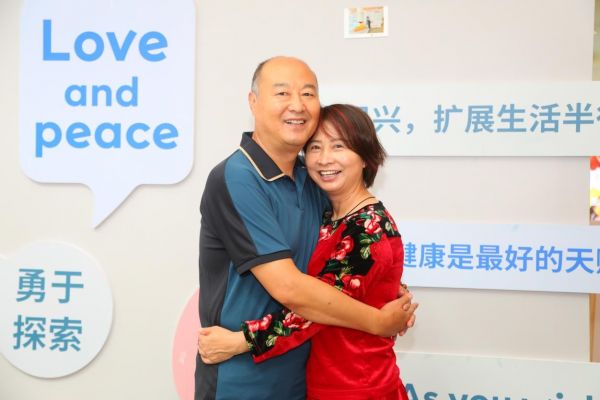 一对叔叔阿姨正在上演“爱的抱抱”打卡,感受温馨一刻............