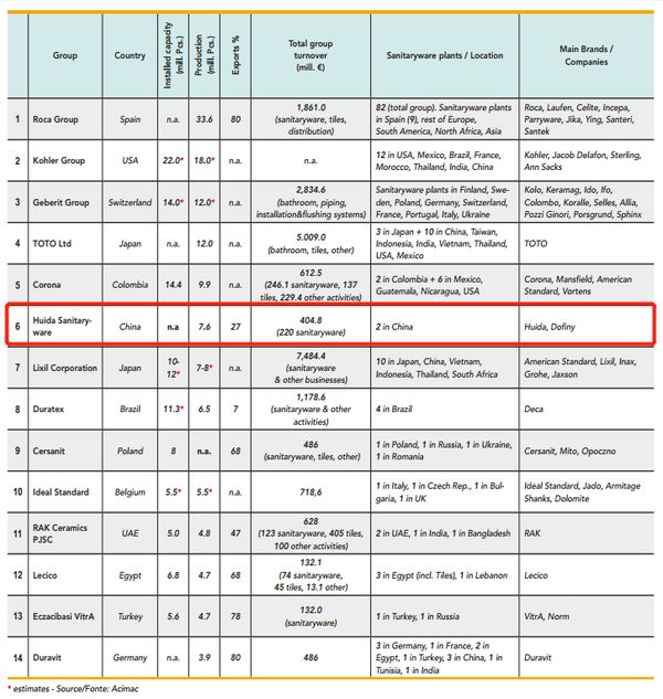 近年来,惠达卫浴在海外市场,更积极实施自主品牌建设,通过国际性展会、网络推广等多样化形式,持续提升品牌在国际市场的美誉度与消费者认可度。在此前国外媒体《陶瓷世界评论杂志》(Ceramic World Review)发布的全球卫浴行业大玩家榜单中,惠达卫浴作为唯一的中国卫浴品牌上榜,总排名高居榜单第六位,与一众国际卫浴品牌同台竞技。