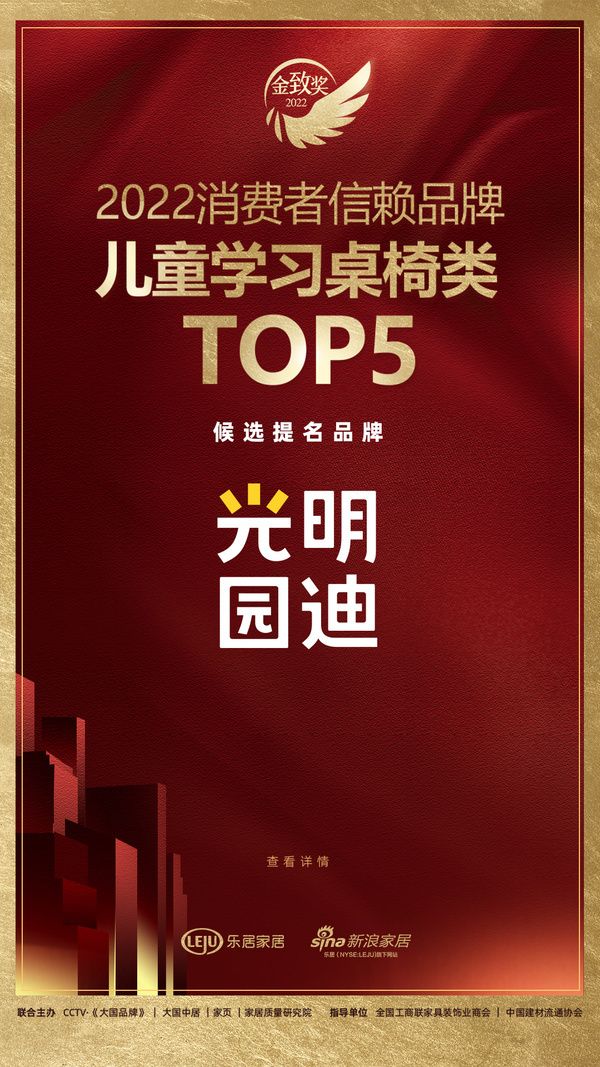 网址:光明园迪入围「2022消费者信赖品牌儿童学习桌椅类TOP5」候选提名品牌 https://www.jiaju82.com/news-view-id-825300.html