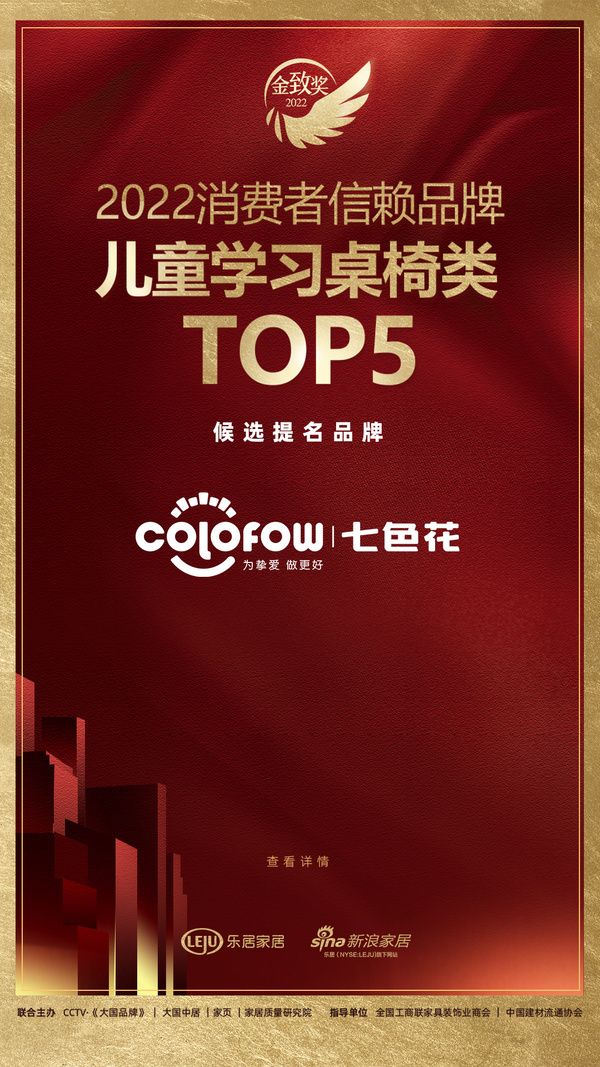 网址:七色花入围「2022消费者信赖品牌儿童学习桌椅类TOP5」候选提名品牌 https://www.jiaju82.com/news-view-id-825337.html