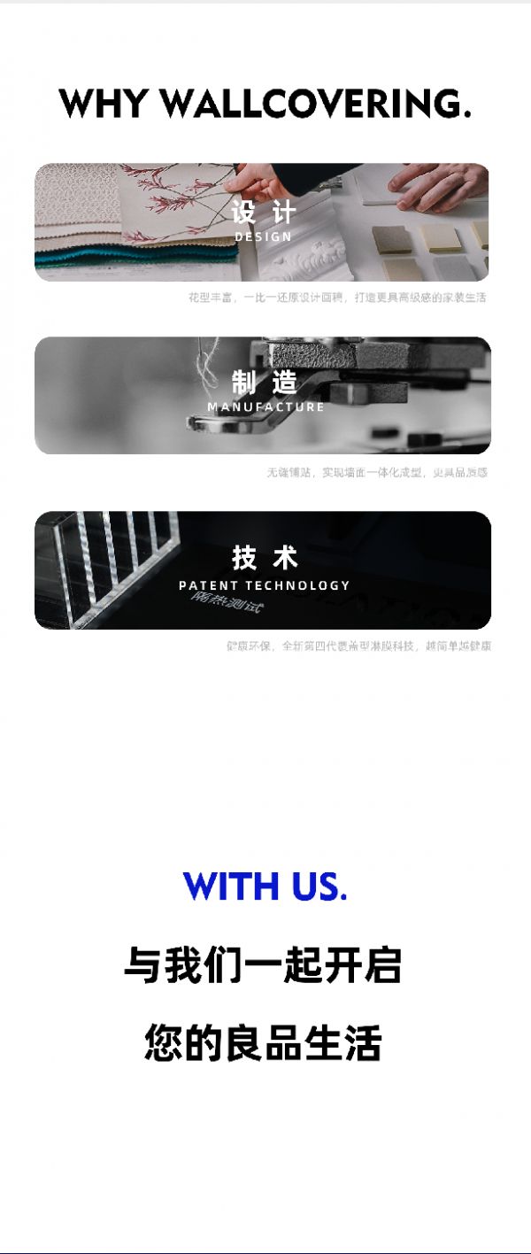品质方面:背靠“中国墙布第一股联翔股份”(股票代码603272),「良品颂」产品品质稳定、售后无忧;传承领绣淋膜专利技术(201910715235.1)与物理熨烫工艺结合的第四代覆盖型淋膜墙布,「良品颂」将健康环保软装产品带到千家万户,和广大消费者一起迎接更健康的生活方式。