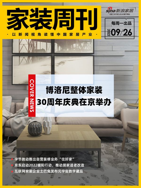 家装周刊|博洛尼整体家装30周年庆典在京举办;字节跳动推出自营装修业务“住好家”;京东启动...