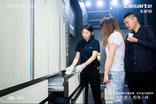 9月23日,《程风破浪·湘鉴不凡》2022卡萨帝艺术生活美学思享荟,于星城长沙开启,卡萨帝设计师系列闪耀登场。在两侧零嵌基础上,新品冰箱实现了正面平嵌的效果,与厨房无缝融合,同时也开辟了嵌入式冰箱全新赛道。