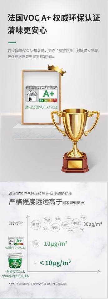 通过法国VOC A+认证,对环保的要求严苛于国家标准9倍。