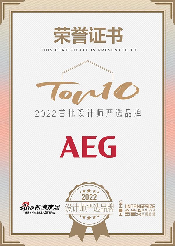 近日,由新浪家居联合金堂奖全国联盟共同发起的「2022 设计师严选品牌 TOP10」活动重磅启动,活动汇集了全国两岸三地数十位设计大咖担纲特邀点评嘉宾,并邀请全国千余名卓越青年设计师担任推荐官,将以设计师专业视角,甄选出服务于设计师及业主的高品质制造品牌。AEG荣膺「2022 设计师严选品牌TOP 10」称号。