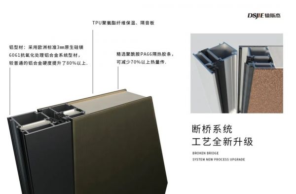 这樘门不仅表面做工精湛,内部也进行了全新的升级。内部采用断桥系统,太空铝合金型材骨架+特种型材做断热材料+防火保温材料,兼顾EPDM密封隔热、合金散热等优势,在满足装饰效果同时兼顾隔热隔音等功能。