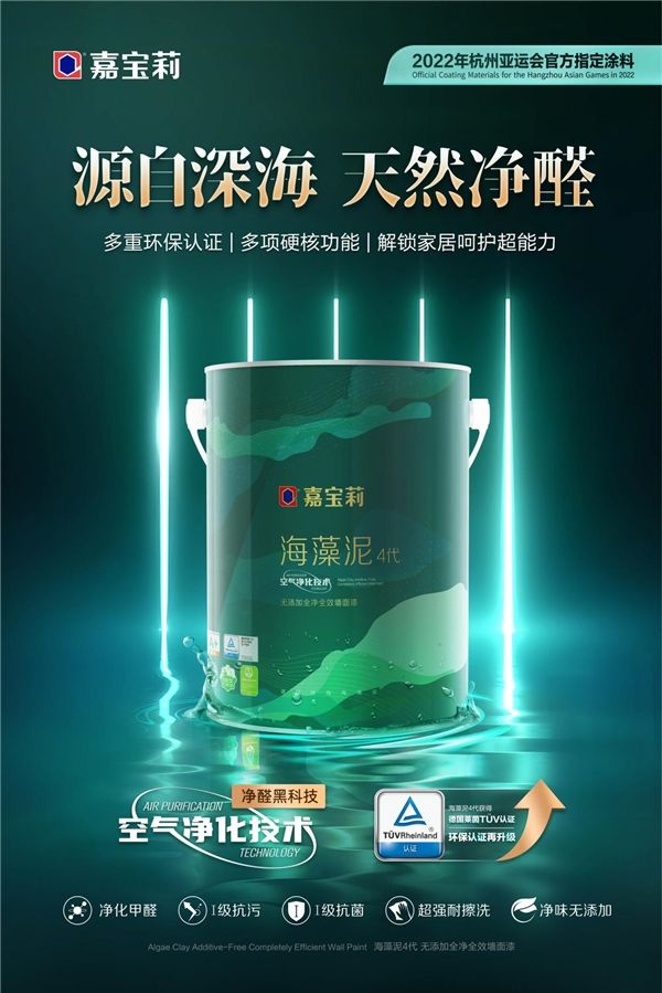 今年6月份,全新上市的嘉宝莉海藻泥4代无添加全净全效墙面漆,正是针对家居环境中的甲醛污染问题,在预防和治理方面均卓有成效的一款优质产品。