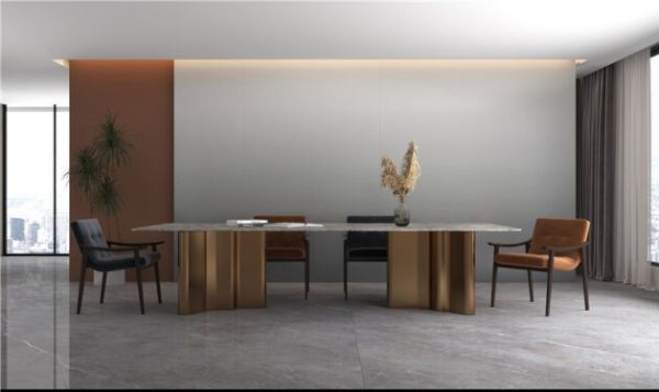 比如在客厅空间可以采用连纹效果的护墙岩板,视觉上更加开阔延伸,精致的纹理连贯居室,形成遥相呼应的高颜值质感家居,非常适合开放式大平层、各类高端精修房。