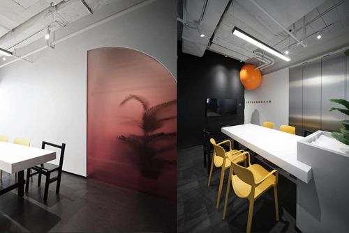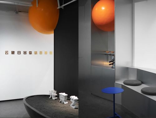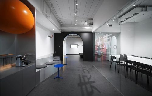 这次的项目是以戏剧性为设计主线,紧扣项目主题,将从事表演类艺术类培训空间,通过强烈的橙蓝对比色,以及突兀的圆球造型,在看似不合理的位置,通过设计分析,放置在合理的位置上,使得空间产生强烈的视觉冲击,一方面从商业的角度让用户很快对空间产生印象,从而加深品牌识别度,另一方面从视觉效果角度,让空间更具艺术性,戏剧性。