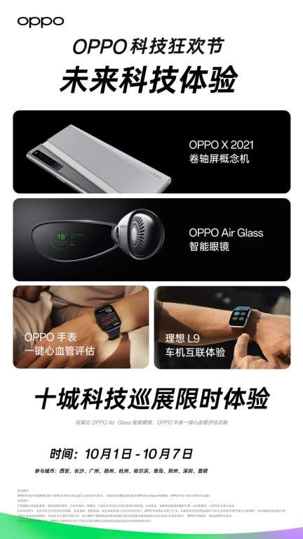 2022年9月30日,OPPO科技狂欢节将正式开启。活动首日,OPPO Watch 3系列产品代言人易建联将现身东莞东城万达广场OPPO体验店,化身“一日店长”,与现场粉丝互动,共同体验OPPO X 2021卷轴屏概念机、OPPO Air Glass 智能眼镜等未来科技产品。OPPO科技狂欢节将持续至10月7日,活动期间用户到店购机可享最高优惠400元、最高12期分期免息、以旧换新最高补贴666元等多重福利。