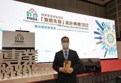 主办方香港物业管理业监管局向碧桂园服务全资附属公司香港柏龄物业颁发了【物管先锋】荣誉称号。碧桂园服务香港区域冯惠海总代表公司上台领奖。此次典礼旨在嘉许首批获得香港物业监管局PMSA牌照的物业管理公司,以及表扬他们在香港疫情期间的优异表现。鼓励大家继续携手协力,“ 一同迈向物管新里程,抱拥物管新世代。”